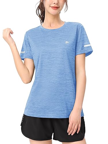 TACVASENの半袖Tシャツは、レディース向けの速乾性トレーニングウェア。通気性に優れ、登山や釣り、ゴルフに最適です。涼しげなライトブルーで夏にぴったり。サイズはLです。