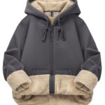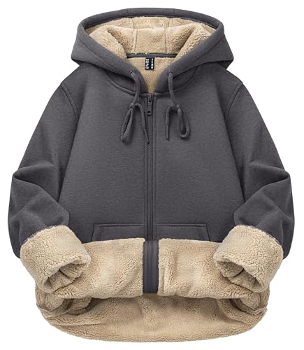 TACVASENのジップアップパーカーは、レディース用の冬用スウェットフリースで、防寒性に優れたカジュアルな上着です。長袖で部屋着や日常使いに最適、ゆったりとしたXLサイズ。無地のダークグレーで、暖かくストレッチ性があります。