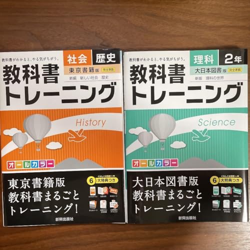 教科書トレーニング 理科2年&社会歴史セットは、2年生向けの理科と歴史の学習をサポートする教材です。楽しみながら知識を習得できる内容で、豊富な練習問題と解説が特徴です。