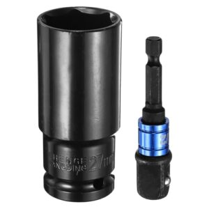 uxcell インパクトソケット 27mmメトリックソケット ディープ6角 差込角1/2″ドライブ 78mm長さ 1/4″六角軸アダプター付き 電動手動兼用 CR-Vスチール アダプターアクセサリーツールセットキット ヘックスボルトナット用
