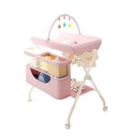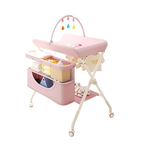 【ベビーチェン】折りたたみ式おむつ台は高さ調節可能、キャスター付きで移動も楽々。腰痛予防設計、沐浴後のお手入れも簡単。赤ちゃんケアや旅行に最適な安全ストラップ付き。
