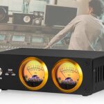デュアルアナログVUメーターアンプ、RGB音量指示器付き。真空管アンプで、ホームオーディオ用に設計されています。明るさや色、ゲインの調整が可能です。