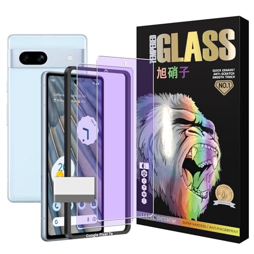 硬度10H、ブルーライトカットのGoogle Pixel 7A用ガラスフィルム。AGC旭硝子製、2枚セット。超薄0.26mm、気泡ゼロ、3D Touch対応、撥油性、指紋防止、耐衝撃で目の疲れ軽減。