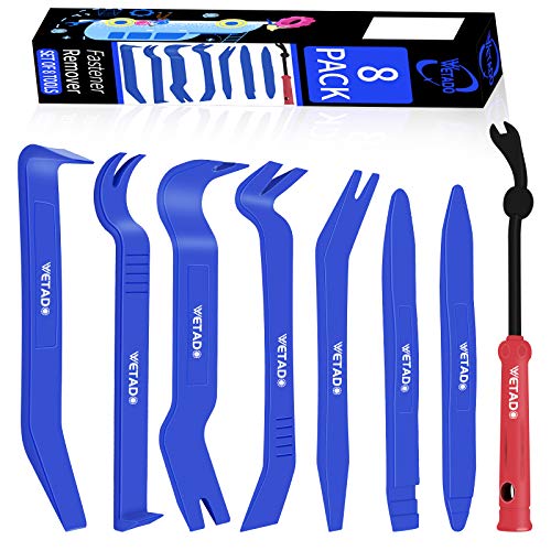 Wetadoの内張り剥がしセットは、車や家具パネルのメンテナンスに最適な樹脂製脱着工具です。7点の内張り剥がしツールとクリップクランプツール(赤)が含まれています。