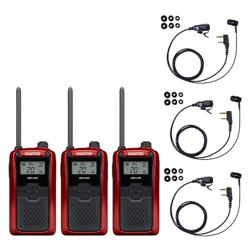 ケンウッドの特定小電力トランシーバーDEMITOS UBZ-LU20とBLUE CENTURY K012Hイヤホンマイクのレッド3台セット。通信範囲が広く、クリアな音質。便利なセットで、ビジネスやレジャーに最適。