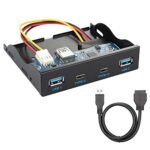 USB-CおよびUSB 3.0ハブ4ポート搭載。3.5インチフロッピーベイ用のフロントパネルデザイン。マザーボードに接続する20ピンコネクタケーブル付き。