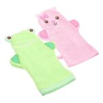 Healevedのベビーバスグローブは、大判ボディスクラブミットで、女児用にデザインされています。肌洗浄ケアに最適な家庭用入浴ミットは、かわいい動物柄(猫、カエル)の2個セットです。