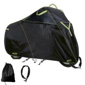 バイクカバー ロック付き 450D 厚手 完全防水 UVカット 大型 盗難防止 ロック穴付き 耐熱 耐久 撥水 防風 防雨 50cc 125cc 250cc 400cc 中型 大型バイク対応 原付カバー グリーン糸 (XXL)
