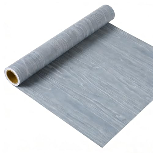 VEELIKE 壁紙シールはグレーの木目調で、40cm×3mのPVC製。カッティング可能でのり付き、剥がせて防水・耐熱・防油。透けず、北欧風のおしゃれなデザイン。キッチンや浴室、リビング、家具のDIYに最適。賃貸用に壁補修や張り替えも対応。