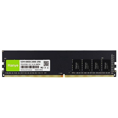 デスクトップPC用メモリ 8GB PC4-21300(DDR4-2666)、288pin DIMM仕様。Hanye製、1.2V、CL19、288pin UD4-08GB-2666-1R8、国内正規品です。高性能で安定した動作を提供します。