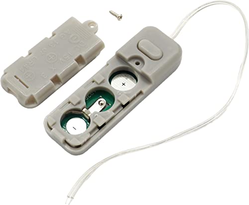 オーディオファンのスイッチ付き電池ボックスは、64×21mmサイズで4.5V出力。LR44ボタン電池に対応し、プッシュスイッチと16cmリード線が付属しています。