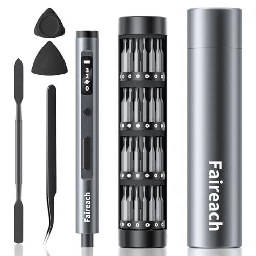 Faireach 65-IN-1電動精密ドライバーセットは500mAhバッテリーを搭載し、3段階のトルクで最大3N.mの力を発揮。ポータブルで便利なペン型、正逆回転、LEDライト、USB-C充電可能。スマホやメガネなどの修理に最適です。