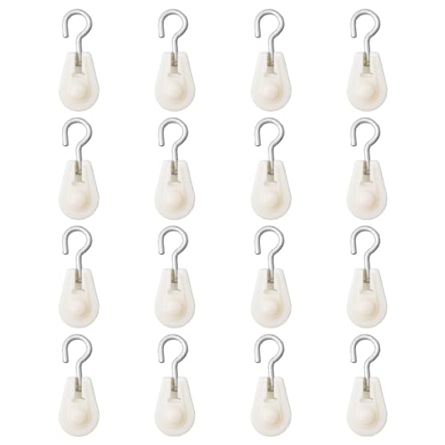 UFURMATE シングルプーリーローラーは16個のミニプラスチックプーリーフック付きで、360度回転するシングルスイベルプーリーブロックです。DIYプーリーシステムに最適です。