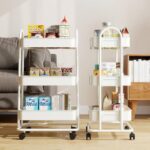 Sekey倒れないスチール製キッチンワゴンは、耐荷重60kgで完全ロック機能付き。キャスター付きで移動も便利。調味料や鍋を整理でき、工具不要で5分で組立可能。シンプルなホワイトデザイン。