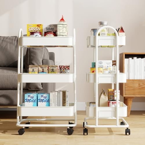 Sekey 倒れないスチール製キッチンワゴン 耐荷重60kg&完全ロック付き 調味料から鍋まですっきり収納 キャスター付き 工具なし5分組立 ホワイトの高価買取ITEM