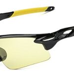 超軽量スポーツサングラス。UVカット機能付きで、ランニングやゴルフ、自転車、アウトドアに最適。男女兼用で、ケース付き。イエローレンズモデル。