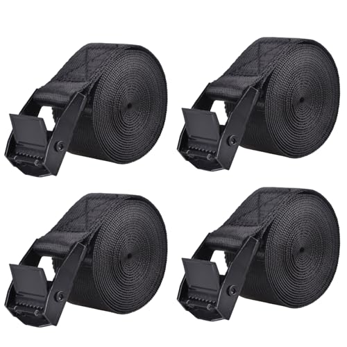 Azarxisの荷締めベルトは、長さ2m、3m、5mから選べる4本セット。幅25mmのブラックで、運搬や梱包に最適。荷崩れ防止や地震対策にも対応しています。