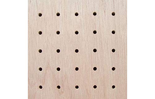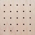 ラワンベニヤ有孔ボードは、5.5ミリ厚、横920ミリ、縦1830ミリで、フック取付可能な5ミリの穴が25ミリピッチで開いています。1枚入りの製品です。