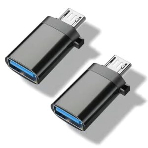 SZSL USB-A to Micro USB アダプタ Type-A (メス) to MicroUSB (オス) 変換アダプタ 2個入り マイクロUSB変換アダプター 変換コネクタ 充電とデータ転送 Xperia、Galaxy、Nexus等Micro USB設備対応 ブラック(シルバーストラップなし)