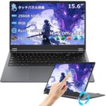 15.6型タッチパネルノートPC。Ryzen 3 3200U、8GBメモリー、256GB SSD搭載。フルHD IPS液晶、360度回転、オンライン学習・リモートワークに最適。重量1.67kg、Wi-Fi5、BT5.1対応。