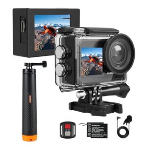 SVBONY SVGo2 アクションカメラ 4K30FPS 5倍ズーム タッチスクリーン スポーツカメラ 100フィート 防水カメラ フローティング自撮り棒付き 有線マイク EIS バッテリー2個 WiFiリモコン スポーツVlog用