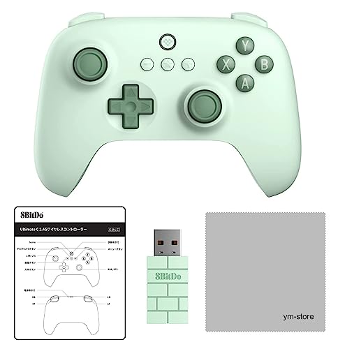 8BitDo Ultimate C 2.4G ワイヤレス コントローラーは、Windows PCやAndroidに対応。正規品で日本語説明書付き。ファームウェアアップデート手順書とお手入れクロスも付属。カラーバリエーションはグリーン。