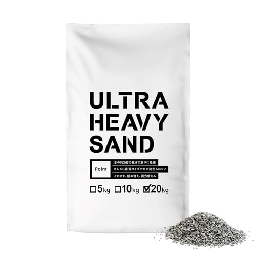 ウルトラヘビーサンドは、ウエイト砂として使用できるダンベル重しで、比重は水の約2倍。20kgの重さで、のぼりスタンド用の最適な重りとして効果を発揮します。