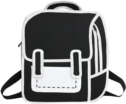 二次元風の3Dコミック柄リュックサック。男女兼用で、スクールや通勤、アウトドアに最適。大容量で多機能、リアルでおもしろいデザインのブラックバックパックです。