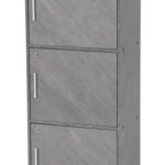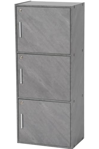 システムK 鍵付き3段収納ラックはA4サイズ対応のセキュリティボックスです。扉付きの木製BOXで、オープンラックとしても使用可能。モルタルグレーのデザインがインテリアに馴染み、おしゃれな収納棚として最適です。