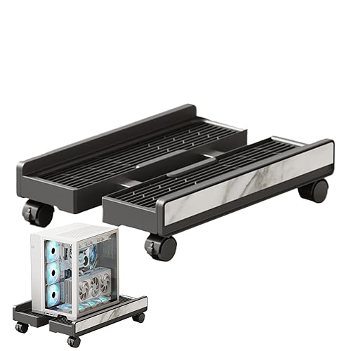 SVCEQZE PCタワースタンドは、調整可能なトレーとブレーキ付きキャスターを備えたCPUカートです。オフィス環境に最適で、ノートPCやプリンター、モニターの床置き収納に対応しています。