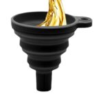 オイル交換用の折り畳み式シリコンファンネル。はね防止機能付きで、カーエンジンオイル以外にもキッチンや実験室での液体充填に対応したユニバーサルな多目的ツールです。