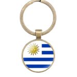 ウルグアイ国旗デザインのキーホルダー。古代風のデザインで、男性・女性問わず使えるギフトに最適。合金と象嵌ガラス素材で作られています。サイズはワンサイズ。