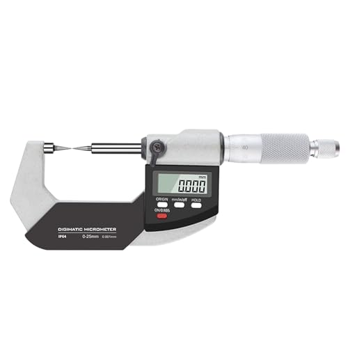 デジタルポイントマイクロメーターは、0-1インチの測定範囲と±0.5インチの精度を持ち、15°尖ったアンビルと超硬チップスピンドルにより、小さな溝や狭いスロットの測定に最適。LCDディスプレイ付きで使いやすい。