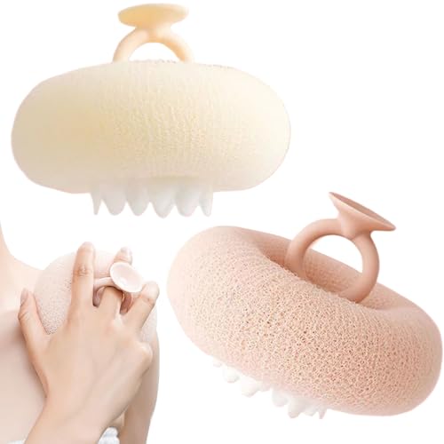 ひまわり柄のボディスポンジ2個セット。優れた吸引カップで滑り止め効果抜群。角質除去やスキンケアに最適。旅行や自宅で、男女問わず使えるスパ用アイテムです。