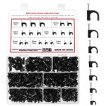 OCRケーブルワイヤークリップ600個パック。ブラックカラーのラウンドネイルワイヤークランプで、スチールネイルを使用したコード管理キット。あらゆるケーブルの固定に最適です。