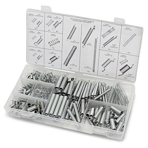 圧縮および延長スプリング200個詰め合わせキット。亜鉛メッキのヘビーデューティー仕様で、ホームレパリスに最適。耐久性抜群のスプリングを揃えています。