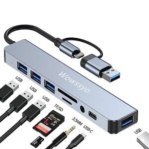 USB C/USBハブマルチポートアダプター、USB 3.0ハブ アルミニウム 7イン1 USBスプリッター SD/TFカードリーダー付き、USB 3.0 x 1、USB 2.0 x 4、USB C x 2 MacBook Pro Air、iPad Pro、ノートパソコン用