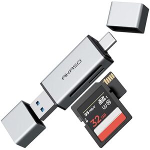 FINEANDENGのグレーUSB3.0 SD/TFカードリーダーは、デュアルスロットでSDとMicro SDに対応。USB-Aプラグでノートパソコンに簡単接続。高速データ転送を実現します。