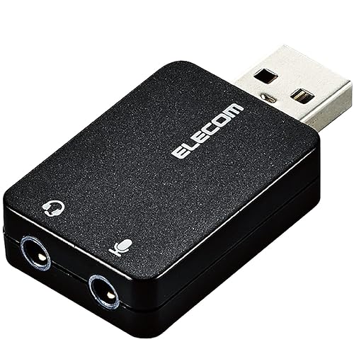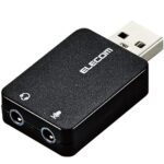 エレコムのUSBオーディオ変換アダプタは、φ3.5mmのUSBからステレオミニジャックに対応。3極・4極両方に対応し、ノイズ解消機能付き。直挿しタイプで手軽に使用できるブラックモデルです。