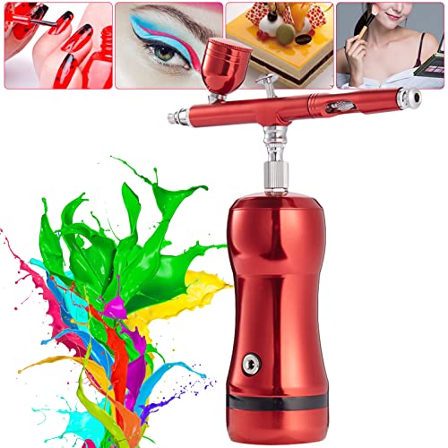 塗装用充電式エアブラシガンセット。22PSI、重力フィード、デュアルアクション。0.3mmチップ付き。モデル、ネイル、タトゥー、ケーキデコレーションに最適。色: レッド。