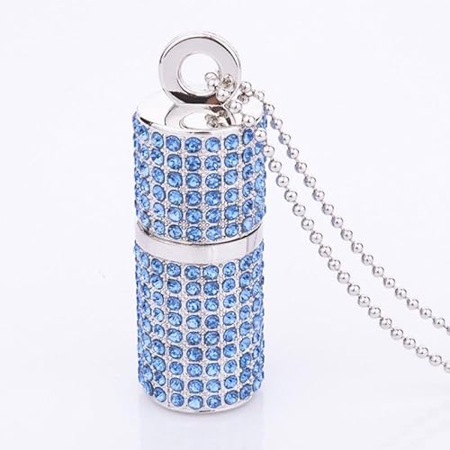 両用タイプの面白い水晶USBメモリ。ネックレスとしても利用可能。容量は16GB、32GB、64GBから選べ、チェーン付きでブルーのデザインが特徴。
