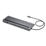 サンワサプライのUSB Type-Cドッキングステーション(型番:USB-CVDK14)は、4K対応のHDMI×2画面出力、USBポート、Ethernetポートなど10種類の接続端子を搭載。多様なデバイス接続に便利です。