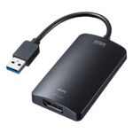 サンワサプライ USB3.2-DisplayPortアダプタは、USB AオスからDisplayPortメスへの変換が可能で、4K解像度に対応しています。型番はUSB-CVU3DP1です。