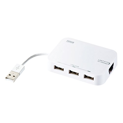 サンワサプライ 3ポートUSB2.0ハブ LANアダプター内蔵 ホワイト USB-HLA306Wの製品情報