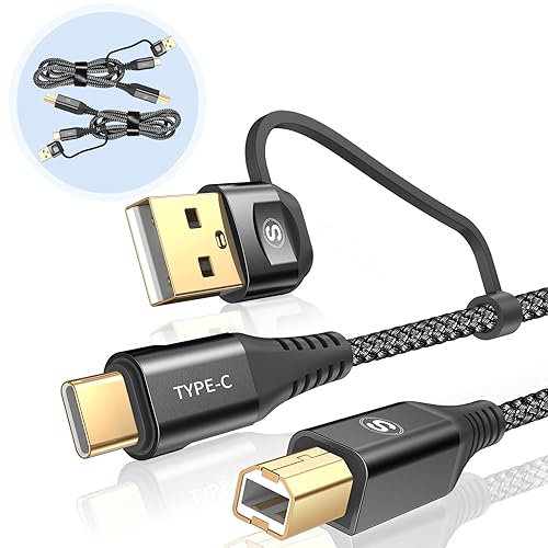 2in1プリンターケーブル6M。USB2.0規格、タイプAオス/タイプCオス – タイプBオス。ナイロン編み、480 Mbps高速転送。HP、Canon、Epson他対応。