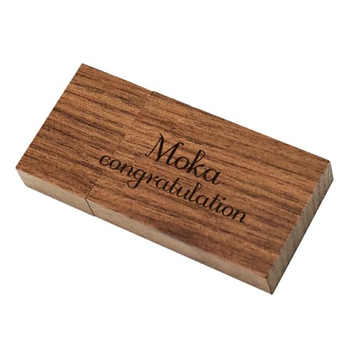 MokuMoku 名入れ USBメモリ 32GBは、木製のウォールナット素材で、美しい刻印が可能です。個人名やメッセージを入れて特別感を演出。データ保存に最適なギフトとしてもおすすめです。