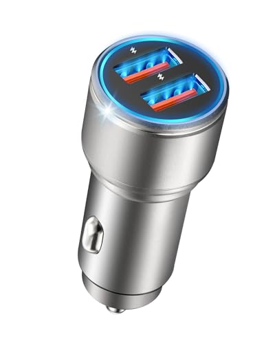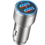 NUIKOTIのシガーソケットUSBデュアルQC3.0ポート車載充電器は、金属製で36W出力、12~24V車に対応。iPhone、Android、IQOSに適合。シルバーカラー。