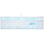 Merdiaのメカニカルゲーミングキーボードは全104キー、US配列のUSB有線モデルです。茶軸のスイッチを搭載し、ホワイトのLEDバックライト付きで、快適な入力環境を提供します。