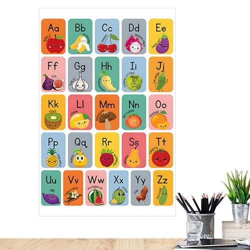 アルファベットポスターは幼児向け教育用の壁装飾で、自己接着性があり、ホームスクールや教室での英語学習に最適です。楽しく視覚的に学べます。