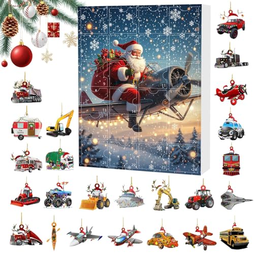 カウントダウンカレンダー | 24日間の12月カレンダーカウントダウン | サンタと乗り物モチーフのオーナメントペンダント | ツリーや玄関ドア用デコレーションの製品情報